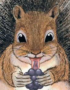 Hi there! It’s finally MY turn to share. What’s this week’s treat? My delightful oh-so-nutty pawprint cookies. Mmm-mm! These sweet treats will have you running in circles and flying from one tree branch to another! Okay, maybe for the kiddies one cookie would be enough—but me, I eat them by the dozens! Yummy! Imagine—tasty cookie dough rolled in chopped nuts and topped off with blackberry jam. Mmm-mm! A berry-itable feast! It’s a forest treat I can climb into. Here’s how you can whirl up a batch.