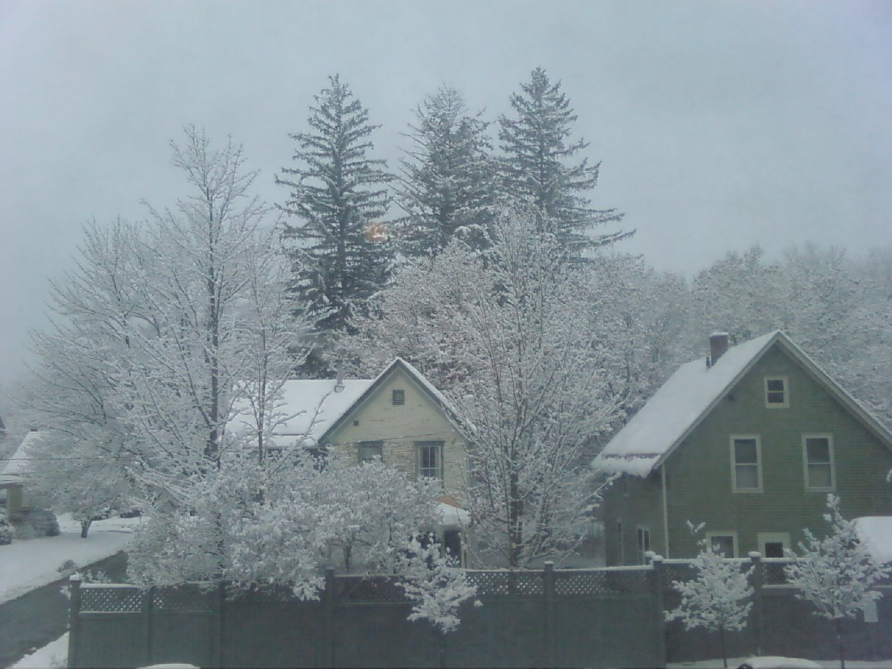 It’s definitely cold here, I think our lowest temps were -3 one night, but the rooms are well-heated and the walks to class are short (sometimes shorter–depending on how cold it is!). As you can see, the campus is quite lovely covered in snow, and I delight at the beauty just outside my window every morning; quaint New England houses across the street, layered in snow with white puffs rising from their chimneys.